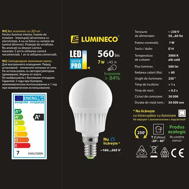 Datorită formei unui Glob în care sunt realizate aceste lămpi LED, razele de lumină vor fi distribuite uniform pe întreaga zonă a încăperii iluminate. Acest tip de lampă poate avea un unghi de iluminare diferit, variind de la 120 la 130 de grade. În plus, balonul lor poate fi mat sau transparent. În funcție de model, lămpile LED au parametri diferiți de consum de energie, precum și luminozitatea fluxului luminos emis de acestea în timpul funcționării.
