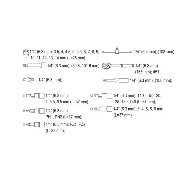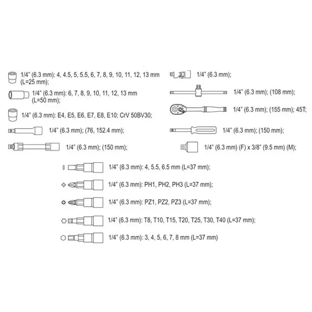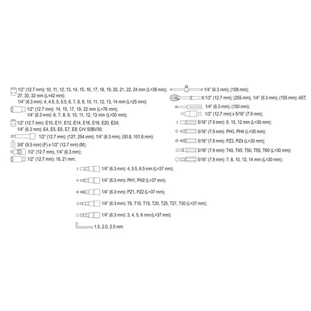 Set de chei tubulare cu clichet 1/2" AS-DRIVE 10 - 32 mm 25 buc. Yato