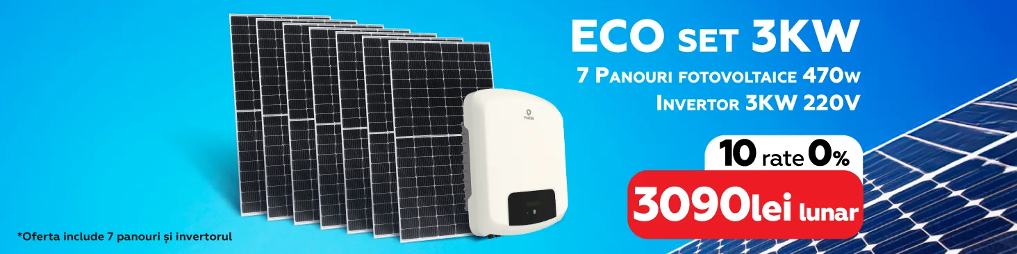 ECO set 3KW: 7 Panouri fotovoltaice + Invertor